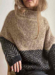 Jeol sweater is worked from the top down without any need for additional finishing. German short rows are used to shape the neckline and it is worked simultaneously as the neck rib. Afterwards the shoulders are formed with increases and then the back and front are knitted separately before they are joined together. The colour work pattern on the body and sleeves are knitted by chart.