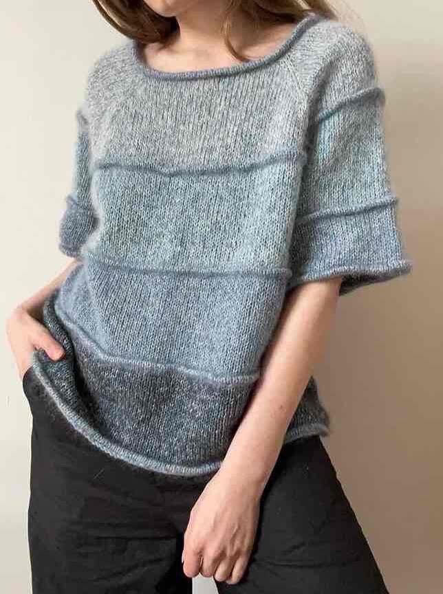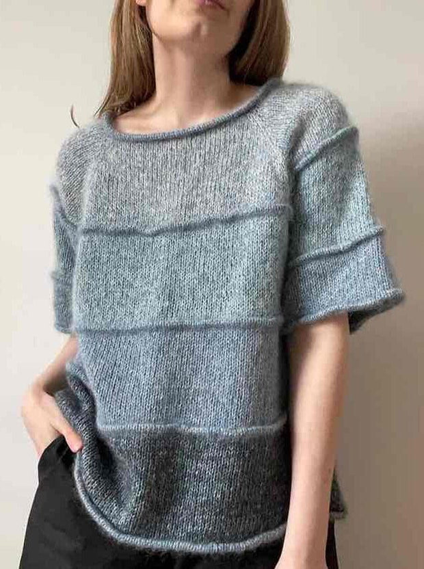 Pado tee is a light and fun t-shirt inspired by the waves at the sea. Details include raglan sleeves and panels marked by the knitted welt to emphasize the feeling of the waves. Pado may be the obvious leftover project because you can vary your silk mohair colors in all kinds of combinations – or just keep it in one color – it's all up to you. Point is, Pado is fun to make!
