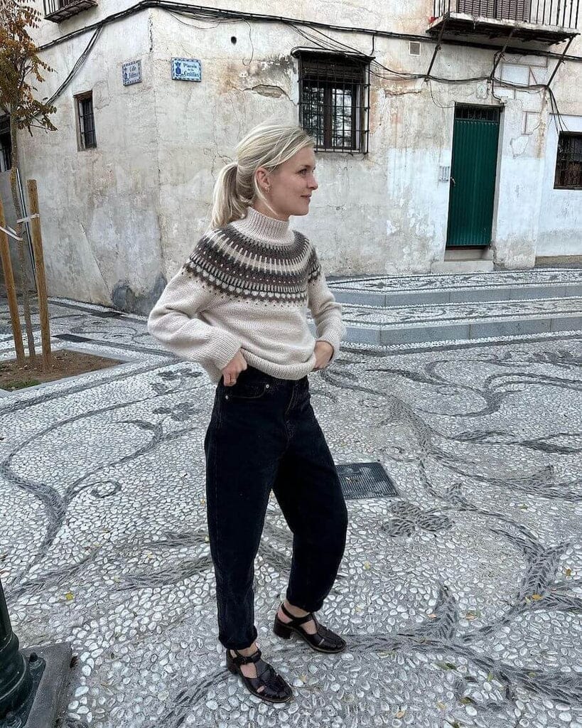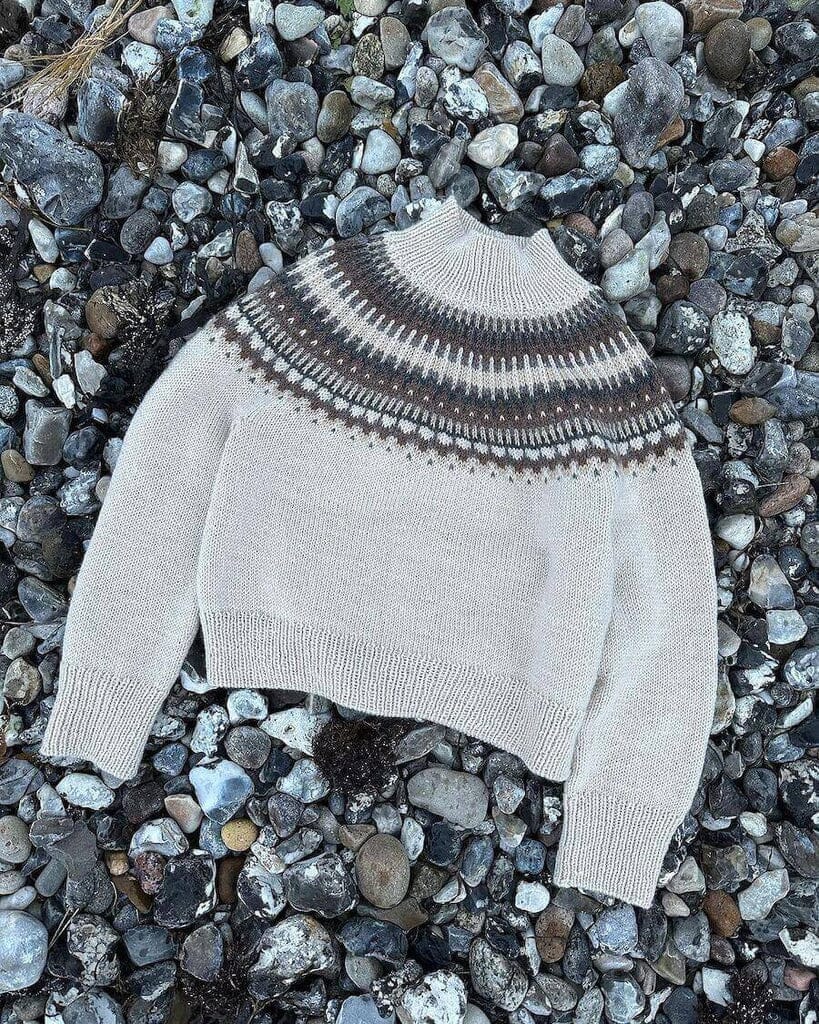 PetiteKnit has designed the beautiful Celeste sweater. A sweater with a loose fit and a colorful pattern across the yoke, making it quite unique.