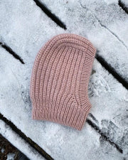 The November Balaclava Mini is worked from the top down in fisherman’s rib. First, a square is worked for the top of the head. Then stitches are picked up and knitted along the sides of the square and the balaclava is worked back and forth to under the chin, where it is joined in the round. At the end, a rib edge is worked around the face opening.