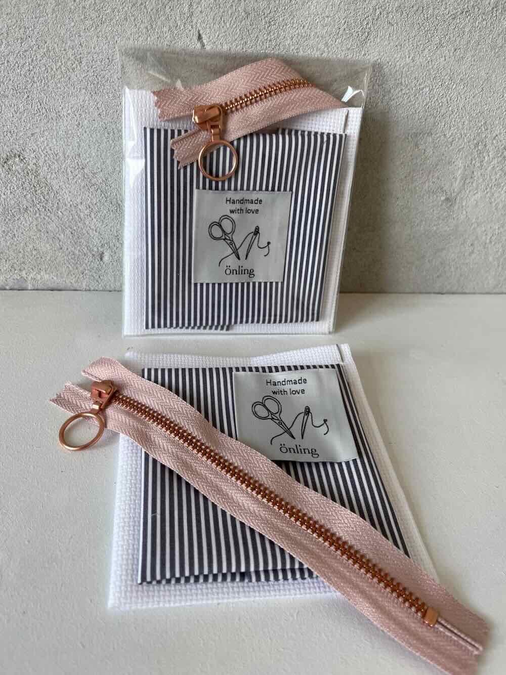 1 x textile label with the text 'Handmade with love' to sew inside the clutch