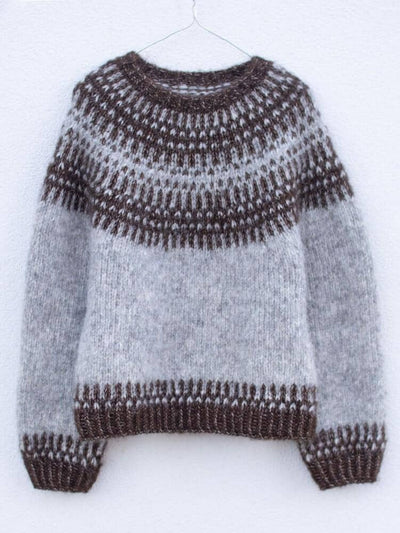 A classic Icelandic sweater is typically characterized by the beautiful yoke, knitted with a fine pattern in many small geometrical shapes and colors. Originally, the Icelandic sweater was knitted in earth tones, which were plant-colored, and were worn by both women and men. Colors and patterns are therefore often gender neutral and suit both women and men.