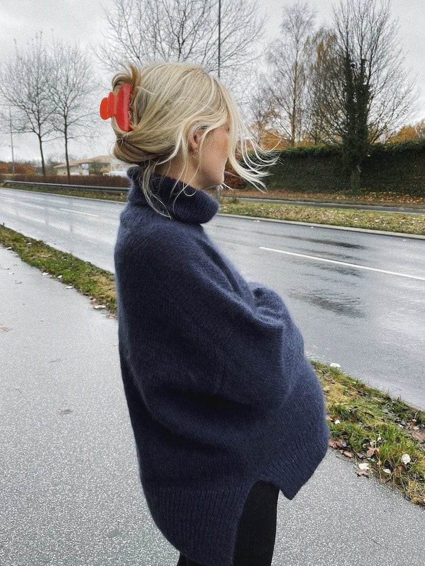 Chestnut Sweater is a beautiful and cozy sweater with a relaxed, oversize fit and a cozy turtleneck. It has wide ribbed edges on both sleeves and body and a slit in the side gives it an extra good fit.