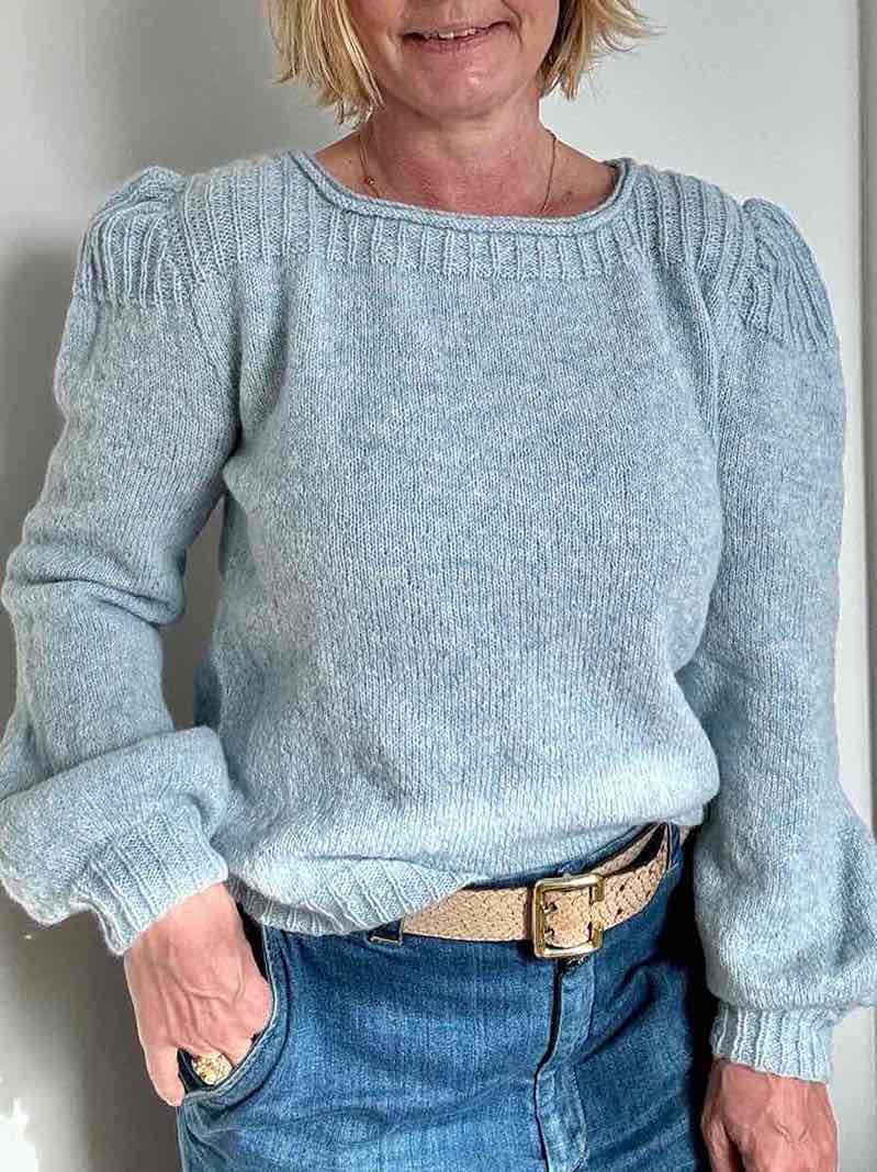 A lovely sweater with many fun details - here worked in a soft and cozy merino wool Önling No 4. The fun balloon sleeves, can be omitted if you prefer to knit ordinary straight sleeves. You get a beautiful sweater with a lot of carefully considered details. It is light and pleasant to wear, both summer and winter. Wear it with jeans or a a pretty skirt for a festive occasion.