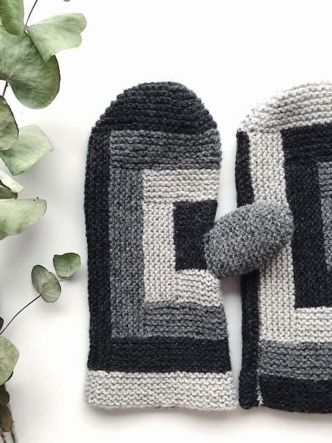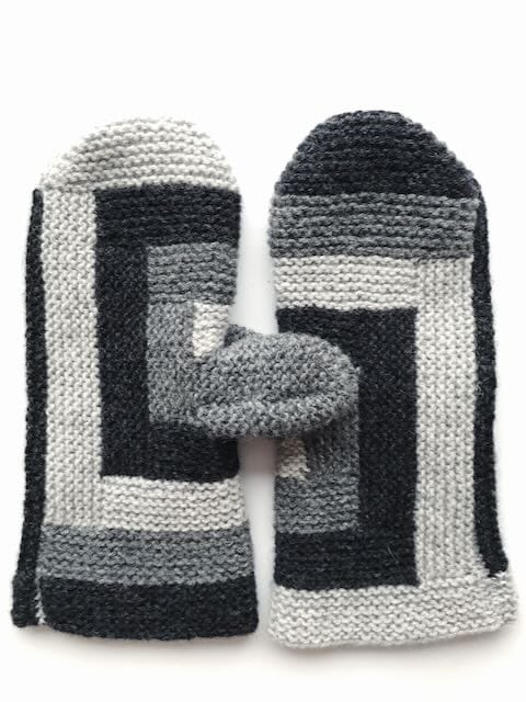 To all of us who think the worst thing about knitting mittens is to knit the thumbs in the end: Here we bring the ultimate solution: We start with them instead! When the thumbs are knitted, we build the mittens using the log-cabin pattern, which is fun, simple and incredibly good to swallow leftover yarn and time, in perfect harmony. You can try them on along the way and easily make them, so they fit exactly to your own hand.