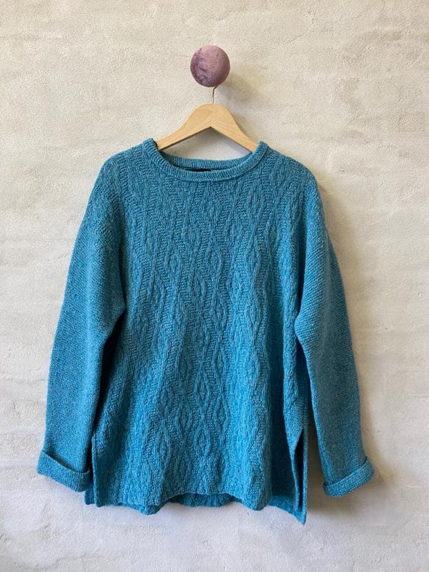 Lovely sweater in textured knitting with a great 'tunic' fit. It has a round neck and slits in the sides, and the length can be adjusted as desired.