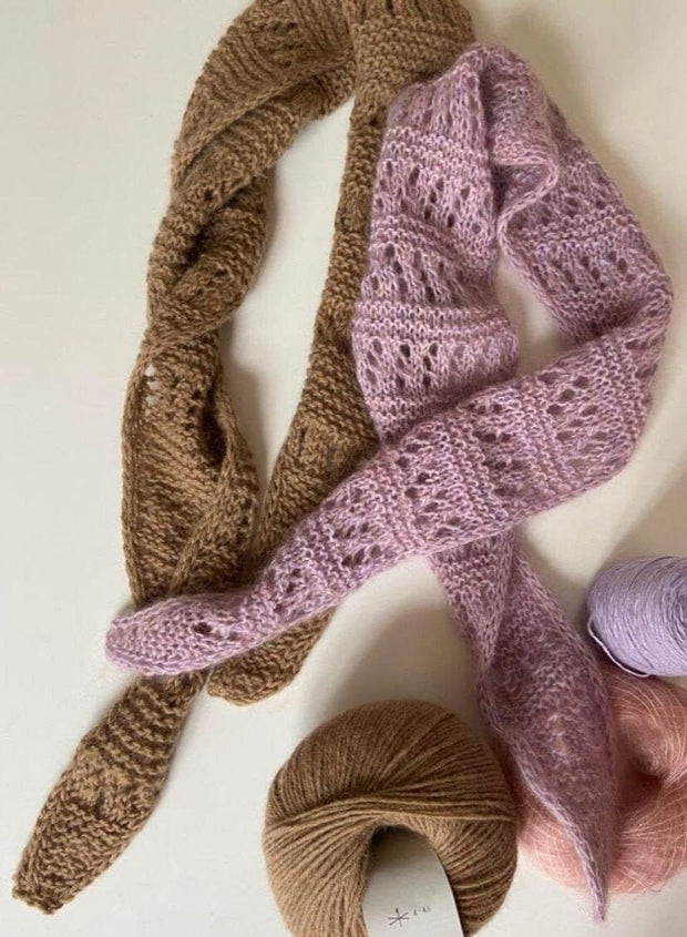 Air Vibe Scarf is a light and warm scarf with a simple lace pattern. The scarf is knitted back and forth with increases and decreases to shape the scarf and an I-cord edge.