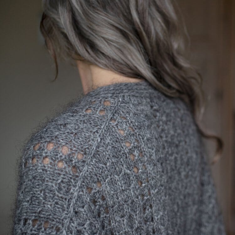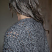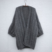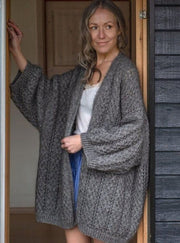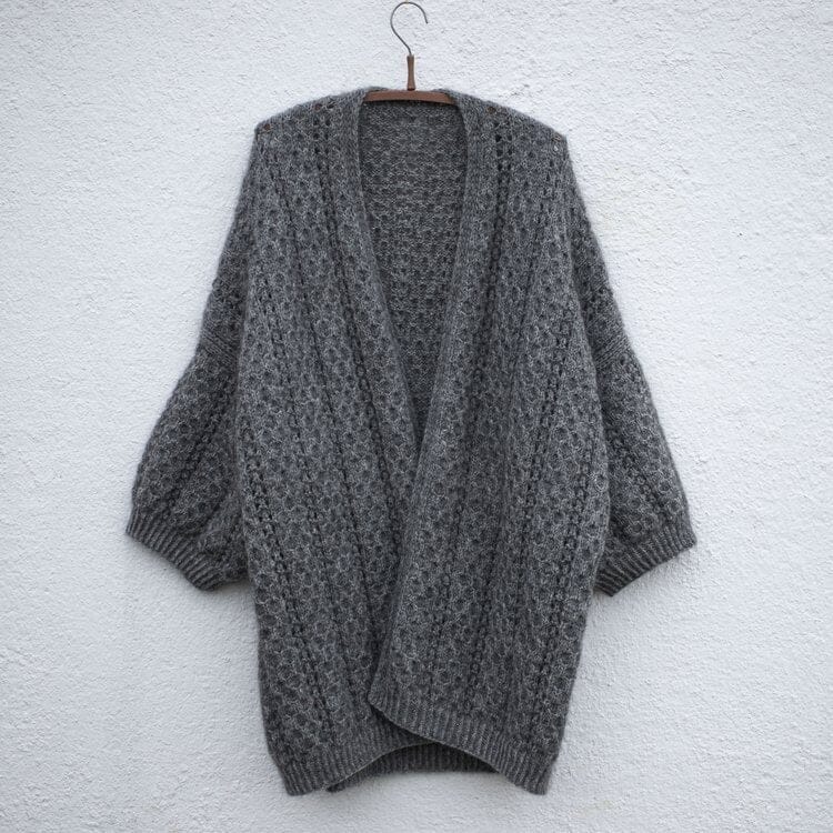 Putting on the roomy Comma Cocoon is like wrapping yourself in a soft blanket, only with more control and ease of movement. The cardigan is worked from the top down in an elegant cable and lace pattern.