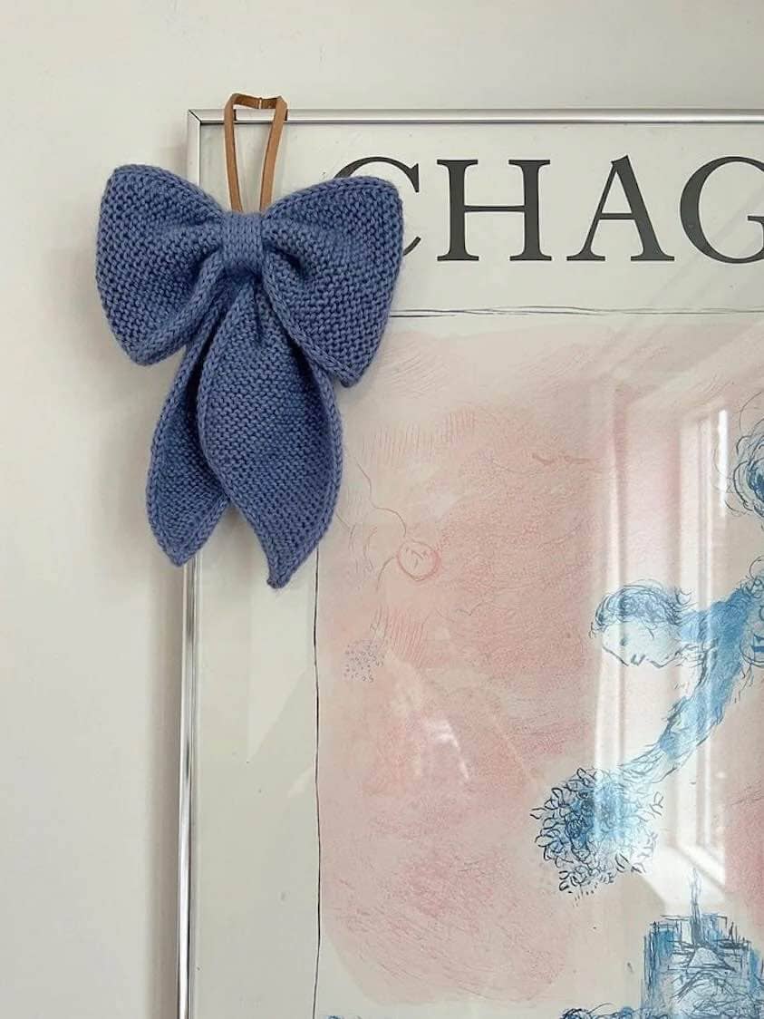 We knit December Bow in a delightful combination of fine merino wool Önling No 4 held together with silk mohair. Resulting in a super cute and soft bow, with a beautifully defined stitch pattern.