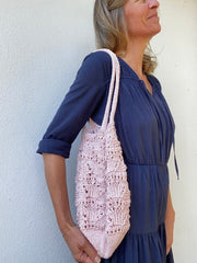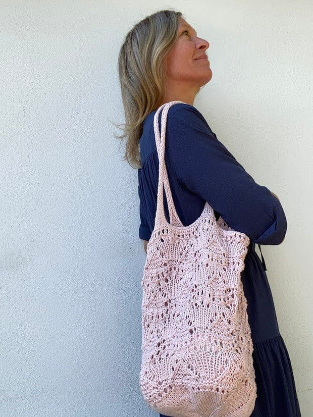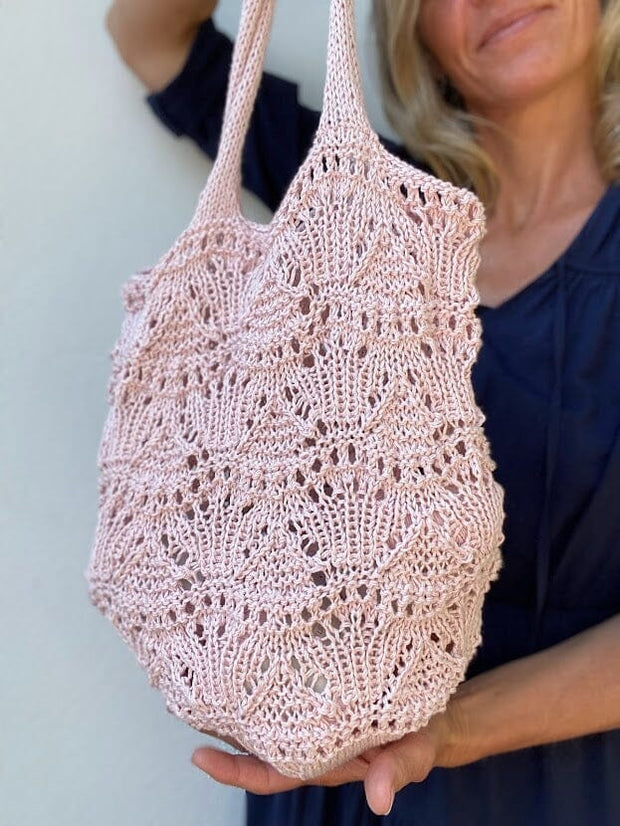 WaveBag is a pretty net / tote with a delicate wavy lace pattern. The net is knitted from the bottom up and the result is a pretty net you can use for shopping, as a beach bag - or perhaps as a project bag?