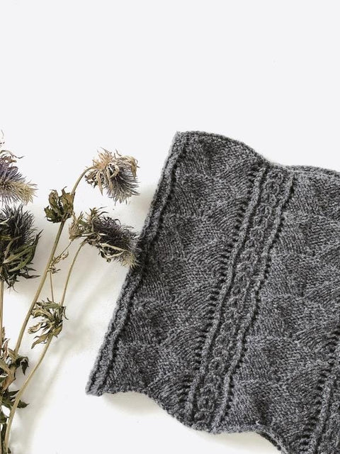Yarn kit for the beautiful Erna Cowl with fan pattern and delicate cables, designed for our Christmas Advent Calendar 2018.