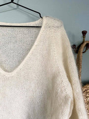 Yarn kit for Cumulus sweater by Petiteknit in Önling No 10 silk mohair, a delicate and elegant sweater knitted in luxurious silk mohair yarn. Cumulus is the name of a type of cloud, and this sweater is just light as a cloud.