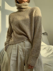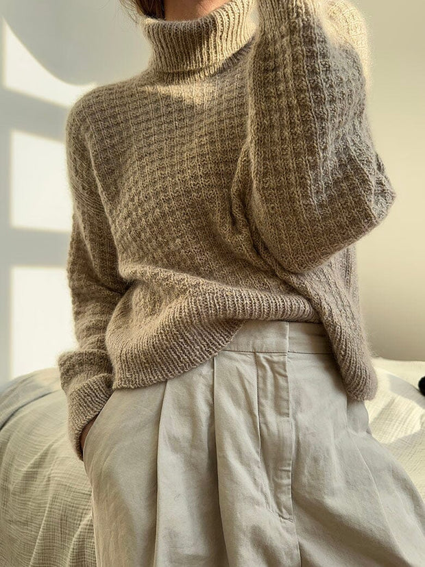 Waffle Loop roll neck sweater is a simple sweater worked in waffle structure with elegant details in rib stitch. The sweater features a turtleneck and a loose fit.