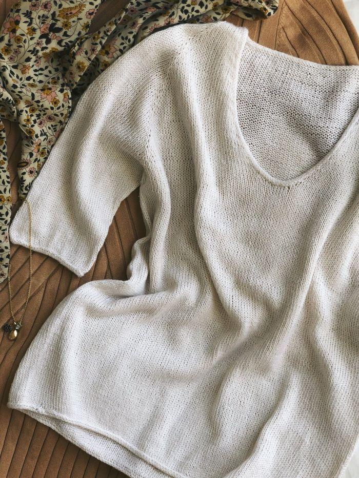 Here we knit it in our own Everyday Yarn, Önling No 12, which makes for a cool summer t-shirt.