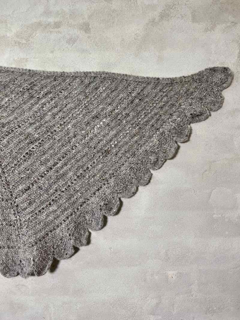 The shawl is reversible. It is finished with a fine knitted lace, that is knitted on at the end, along the edge at the bottom while binding off.