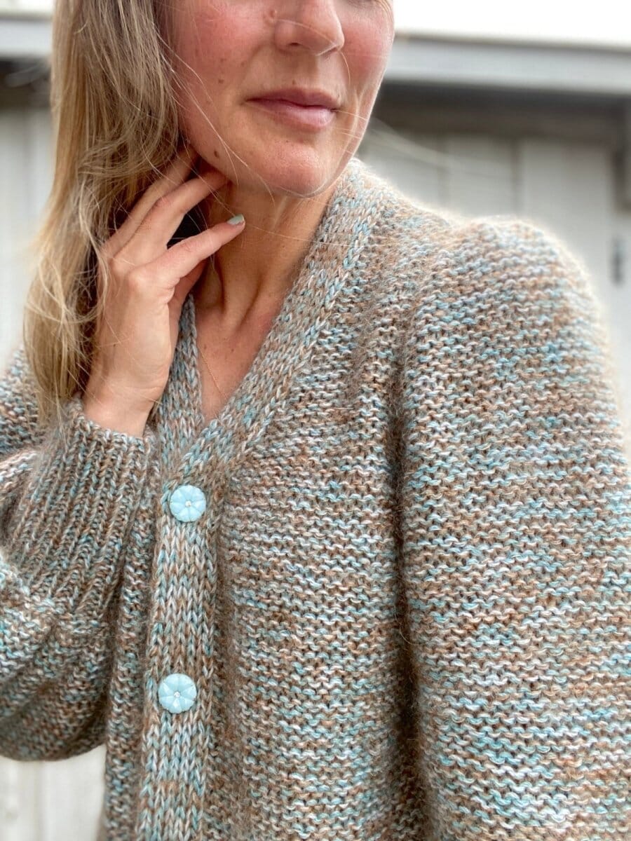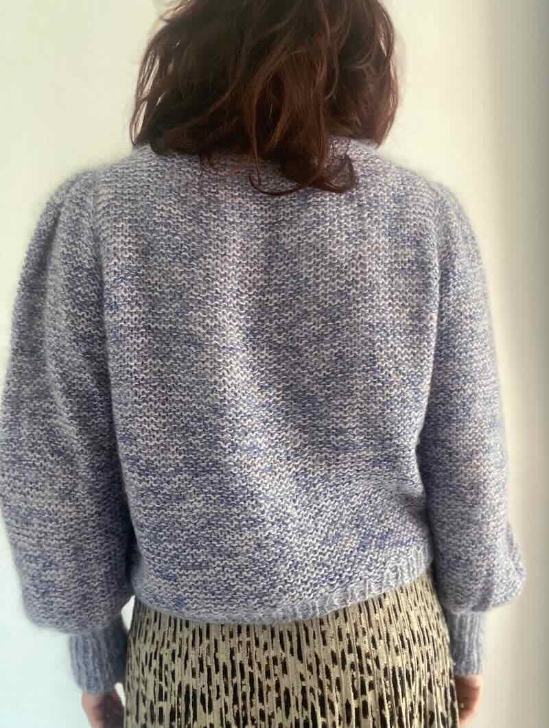 Puff Your Vibe Cardigan is a feminine, oversize cardigan with large balloon sleeves, beautiful saddle shoulders and a v-neck. The cardigan is short and cropped and designed to have a positive ease of 5-15 cm.