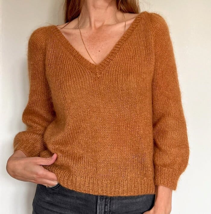 Knitting pattern for Casia V-neck sweater by Refined Knitwear