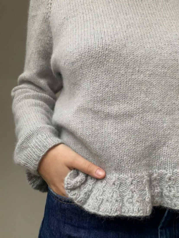 This sweater is beautiful and simple, featuring a delicate ruffle hem which gives it a very feminine look. The ruffle can be left out. This version is knitted in Önling No 1, wool and angora, a warm and soft combination for fall. The Chili sweater has a fairly regular fit, neither tight nor loose, with a positive ease of approx. 5 cm. The design includes a regular armhole size, and the pattern explains full lenght selvves or three-quarter length sleeves.