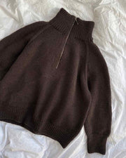 The Zipper Sweater Light is a lovely everyday sweater with a zipper giving it a slightly raw look. It is worked from the top down and the zipper is sewn in between the two layers of knitting – either by hand or on a sewing machine.
