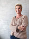 Knitting pattern for Edel a light, summer sweater knitted in organic cotton, with fancy stripes and cool details.