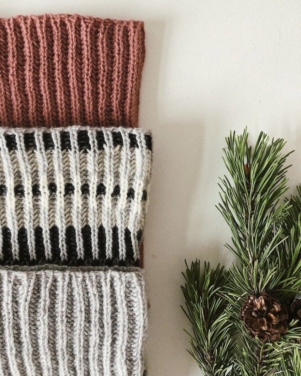 The knitting pattern describes both how you can use single- and doublecolored brioche stitchs, and it is exciting to see the different expressions you can create with the two different techniques.