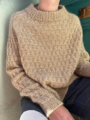 Here we work Esther in our rustic Shetland wool together with silk mohair, and the result is a warm, soft and rustic sweater that is very versatile in use.
