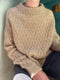 Procedure: The sweater is worked in the round, from the top down. Stitches are cast on using the provisional, crochet cast-on method to allow adjusting the size of the neck opening after finishing the sweater. Short rows are worked over shoulders and back of the neck to make the back of the neck higher. The yoke is worked with raglan increases, and the yoke stitches are then separated into sleeves and body, which are finished separately. The sleeves are worked in the round. After trying on the sweater for size, the provisional cast-on is unraveled, and the neck hem worked.
