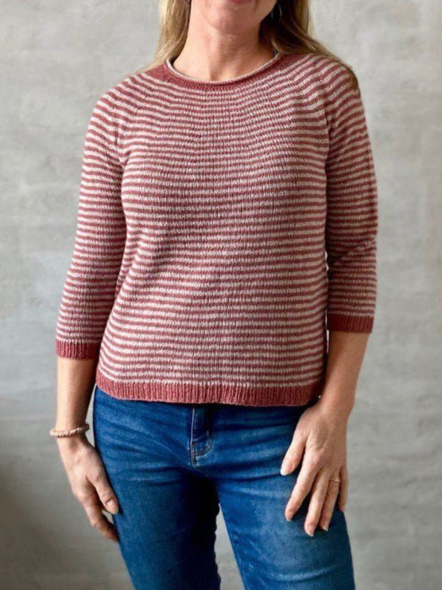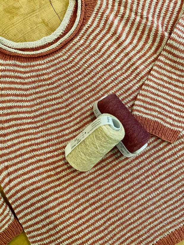 There is just something special about stripes - we love stripes, especially narrow stripes. This t-shirt is a classic, simple and elegant t-shirt with happy stripes. We work it in our Önling No 12, which is a lovely mix of cotton and wool.