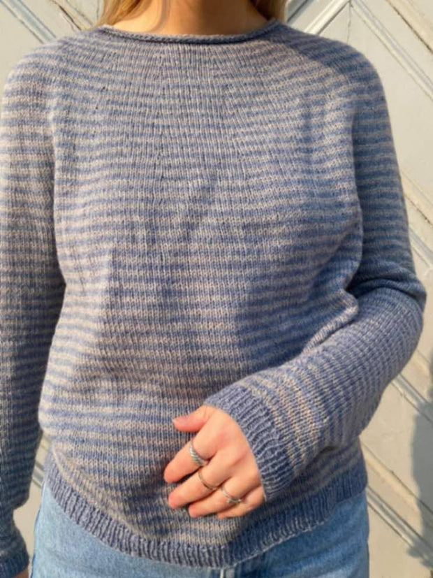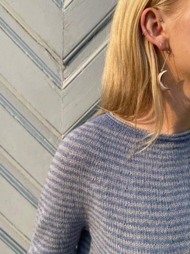 There is just something special about stripes - we love stripes, especially narrow stripes. This t-shirt is a classic, simple and elegant blouse with happy stripes. We work it in our Önling No 12, which is a lovely mix of cotton and wool.