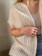The cape is worked from side to side, from the top down. It starts with increasing on each side of saddle shoulders, working short rows onto the front sides. Following this, the work is divided into left front, back, and right front pieces that are worked separately, creating the armholes. Below these, all stitches are combined on one needle and continued down to short rows to provide for the longer back, then setting aside stitches for pockets, and finally a bottom border. Finally, pocket, armhole and neck linings are worked.