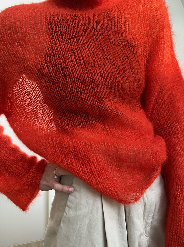 Here we work the sweater in two strands of Önling No 10 (silk mohair) held together for a light and delicate result.