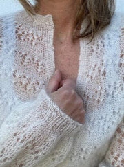VesterbyCrea.No.09-Cardigan is a light and fine cardigan with a fitted fit. Here we work in one strand of silk mohair so it is feather light and airy. The model is worked top down in lace pattern.