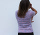 Procedure: The t-shirt is worked top-down. The neckline is worked at the beginning of the yoke and then the shoulder increases. The yoke and the body are worked in the round in alternately lace pattern and stockinette. The body is finished with a ribbing and stretchy bind off.