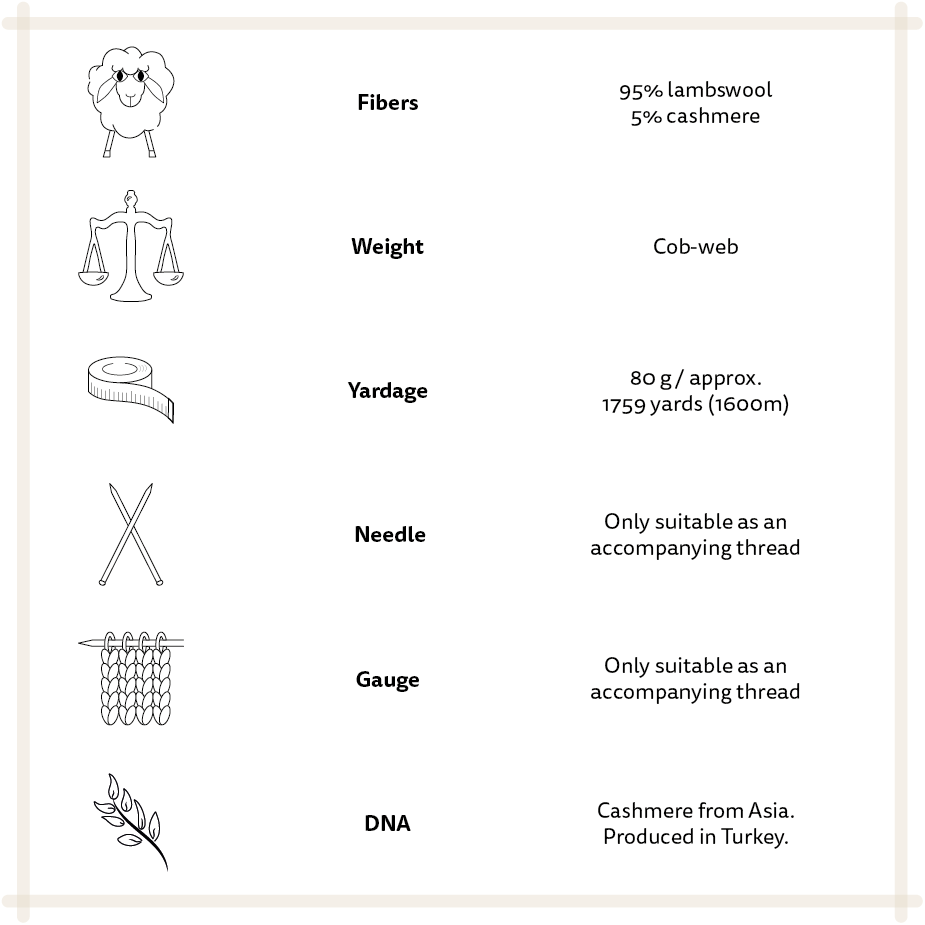 The DNA of the yarn: Cashmere from Asia. The yarn is produced in Turkey.