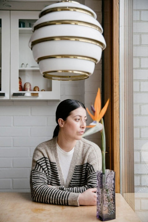 Veera Välimäki is one of the leading knitwear designers in the world. Her designs are known for their simple, clean lines with modern details. Veera lives and works in a small village in Southern Finland surrounded by forests, fields and lakes. Since 2014, Veera has worked on the popular book series, Interpretations, together with Joji Locatelli (published by Pom Pom Press). Stripes is her third hardback book.